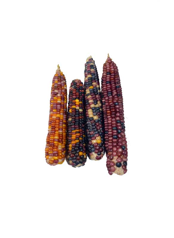 El maíz multicolor orgánico es una variedad ancestral cultivada de forma agroecológica, sin agroquímicos y respetando los ciclos naturales de la tierra. Sus granos combinan tonos amarillos, rojos, violetas y blancos, reflejando la biodiversidad del cultivo tradicional.